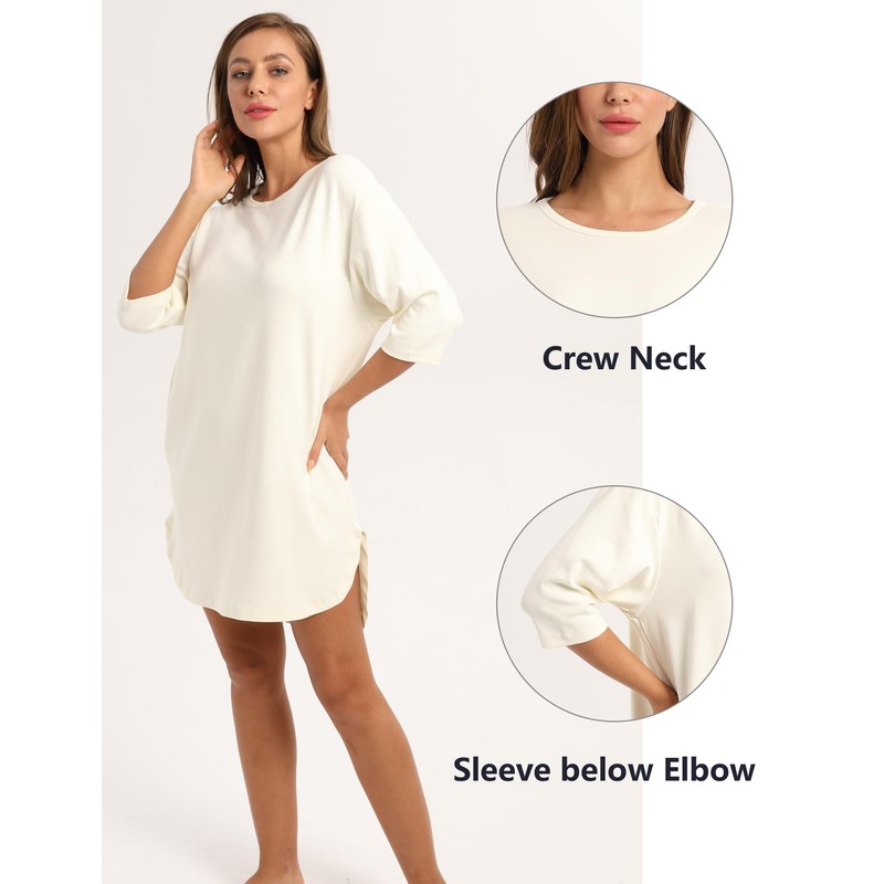 LIQQY camisón de mujer con cuello redondo, manga 3/4, pijama de gran tamaño, Blanco, XL