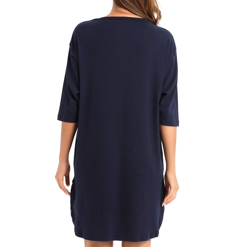LIQQY - Camisón para mujer con cuello redondo, manga 3/4, Azul marino, S