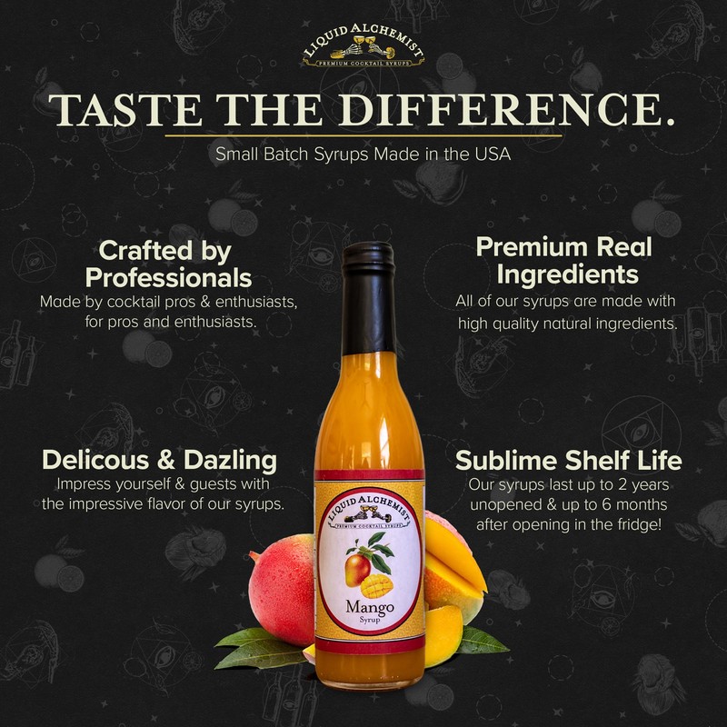 - The Liquid Alchemist Promise - We want your first experience with our craft mango juice syrup to be perfect. If for any reason something is wrong with our mango syrup for tea, lemonade & cocktails, just let us know and we'll send you a new one