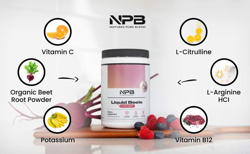 Liquid Beets - Natural Cherry Berry Flavor - Blood Pressure Support, Circulation Booster, Recovery Support, Heart Healthy Energy, Powder, Dietary Healthcare