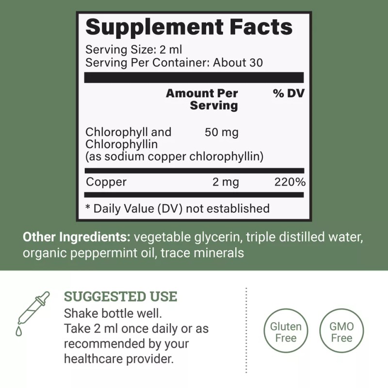 Liquid Chlorophyll Drops For Immune Support - Peppermint Flavor - 2 Fl Oz | G...