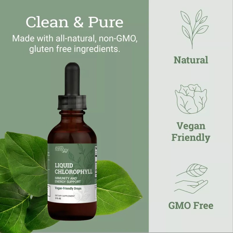 Earth Harmony Liquid Chlorophyll Drops – Peppermint Flavor (2 Fl Oz) 🌿💧