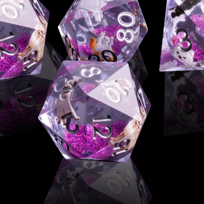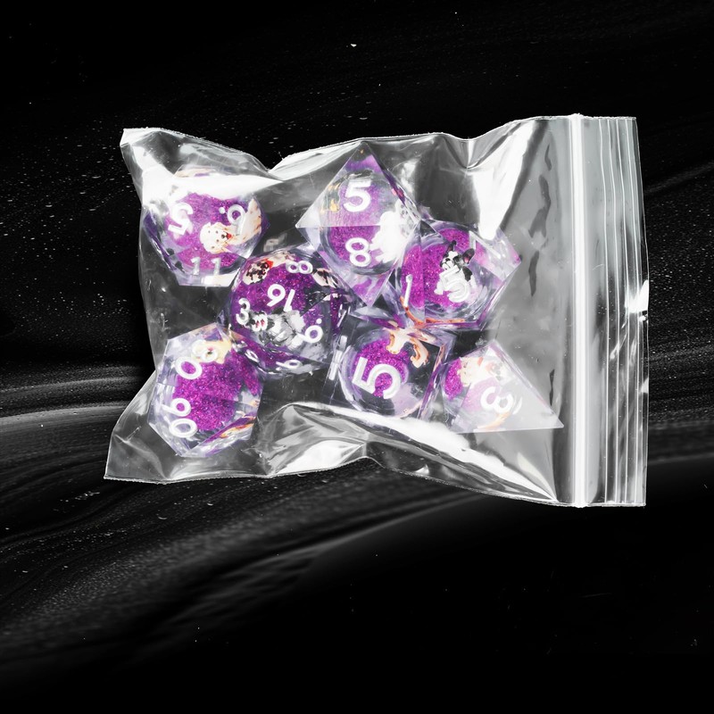- Unique Liquid Core Design with Themed Visuals : Features a mesmerizing liquid core with floating elements inside—such as flowers, animals, or fantasy motifs—making each roll visually stunning and truly one-of-a-kind. Ideal for players seeking dice with personality and flair.
