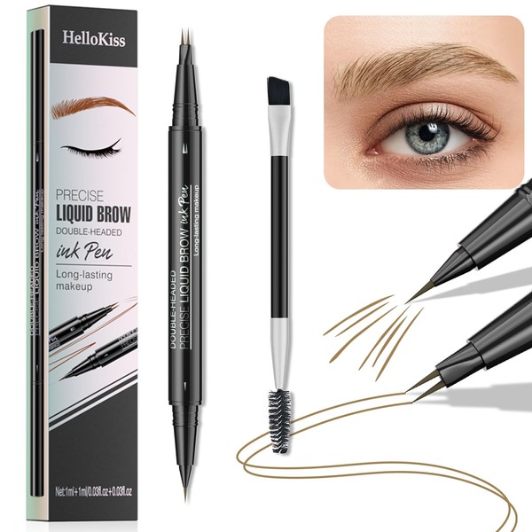 Liquid Eyebrow Pen - New Double Headed 2 Tip Eyebrow Pen with Brow Brush, Eyebrow Contouring Pen for Natural Looking Defined Eyebrows (# 01)