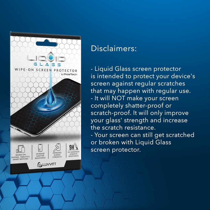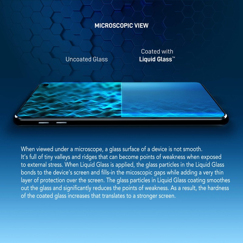- Liquid Glass is an advanced technology, invisible, wipe-on screen protector that bonds to the glass of your device offering enhanced scratch, moisture, and impact resistance.