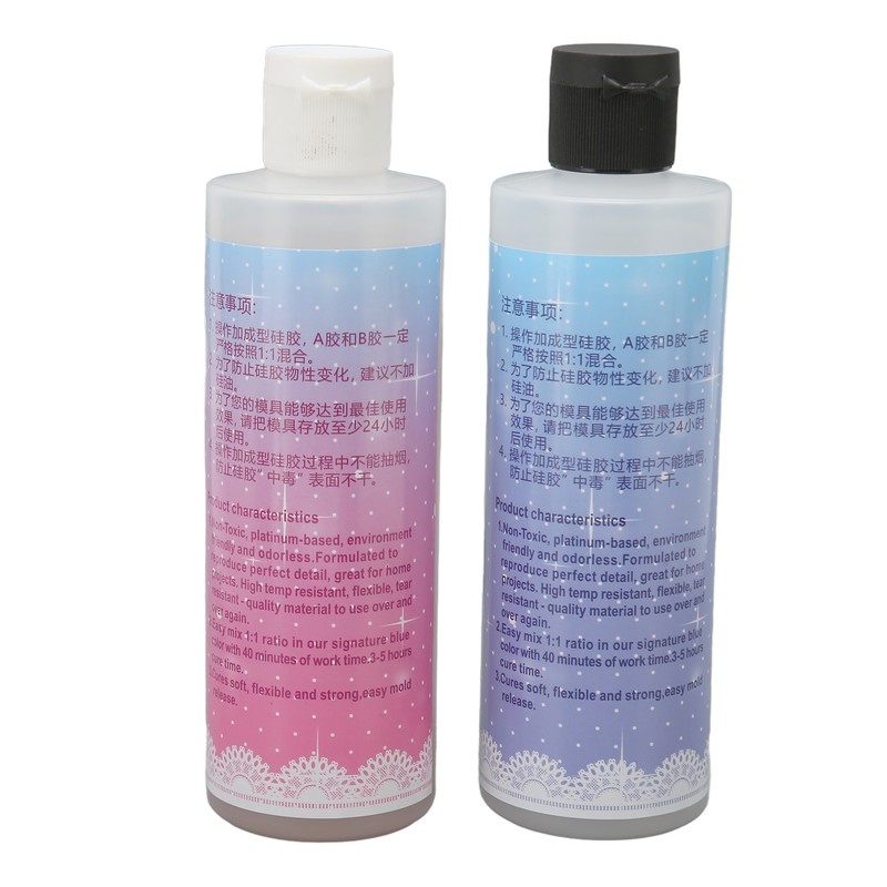 1、DIY MAKING: Art resin can be perfectly matched with handwork pigments, such as resin dyes, glows in the dark pigments, mica powders and so on. Utilize your imagination for DIY production. 2、PREVENT LEAKAGE: There is a plastic bottle stopper at the sealing to ensure that there is no leakage of liquid during transportation, and before use, you need to open the plastic bottle stopper to squeeze out the silicone normally. 3、ELASTICITY: Decompression liquid silicone has good fluidity, strong defoaming ability, good tensile strength, the crafts produced are elastic and can be kneaded and squeezed. 4、MIXED USE: A glue and B glue need to be mixed according to the ratio of 1:1, curing time of at least 24 hours, low odor. 5、EASY OPERATION: When you want to take off the mold, you just need to take off a small notch in one position and it will be easy to take off the mold.