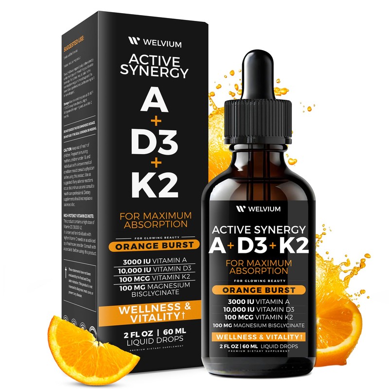 High-Potency Liquid Vitamins: Delivers 10,000 IU Vitamin D3, 100 mcg Vitamin K2, and 3,000 IU Vitamin A per serving to support overall vitality