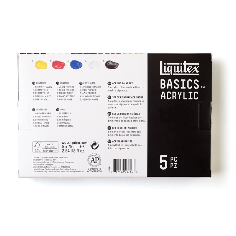 Liquitex BASICS 5 Tube Acrylic Paint Set, 75ml