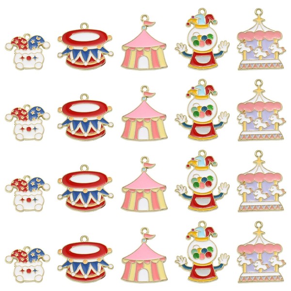 LiQunSweet 30 Pcs 5 Styles Circus Theme Enamel Charms Clown Circus Drum Merry-Go-Round Tent Charms for Party Decoration Holiday Jewelry Making
