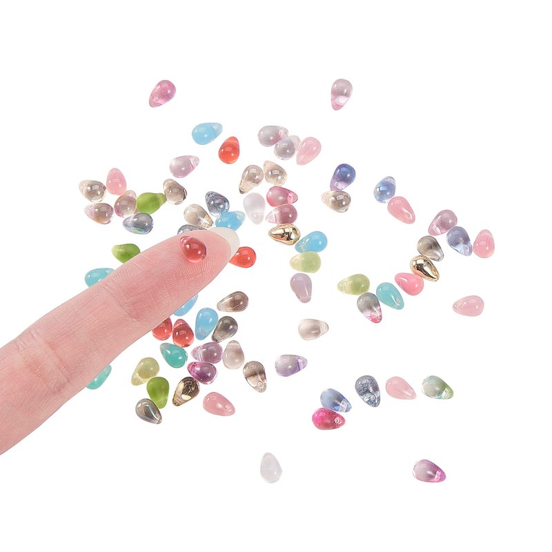 LiQunSweet 350 Pcs Czech Glass Small Crystal Teardrop Shape Beads Electroplated Dyed Imitation Opalite Top Drilled Drop Beads Bulk for Jewelry Making DIY Design - 6.5x4.5mm