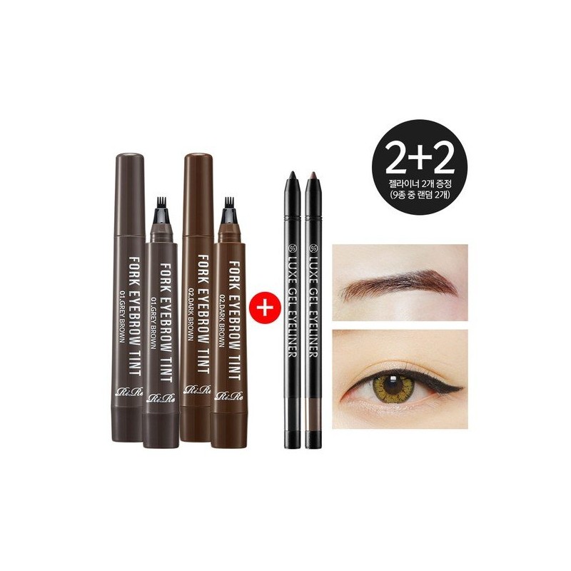 Lir 2+2 event/Lir Fork 2 tattoo eyebrows + 2 gel eyeliners, 08) Fork_Dark brown + Light brown + 2 pencils