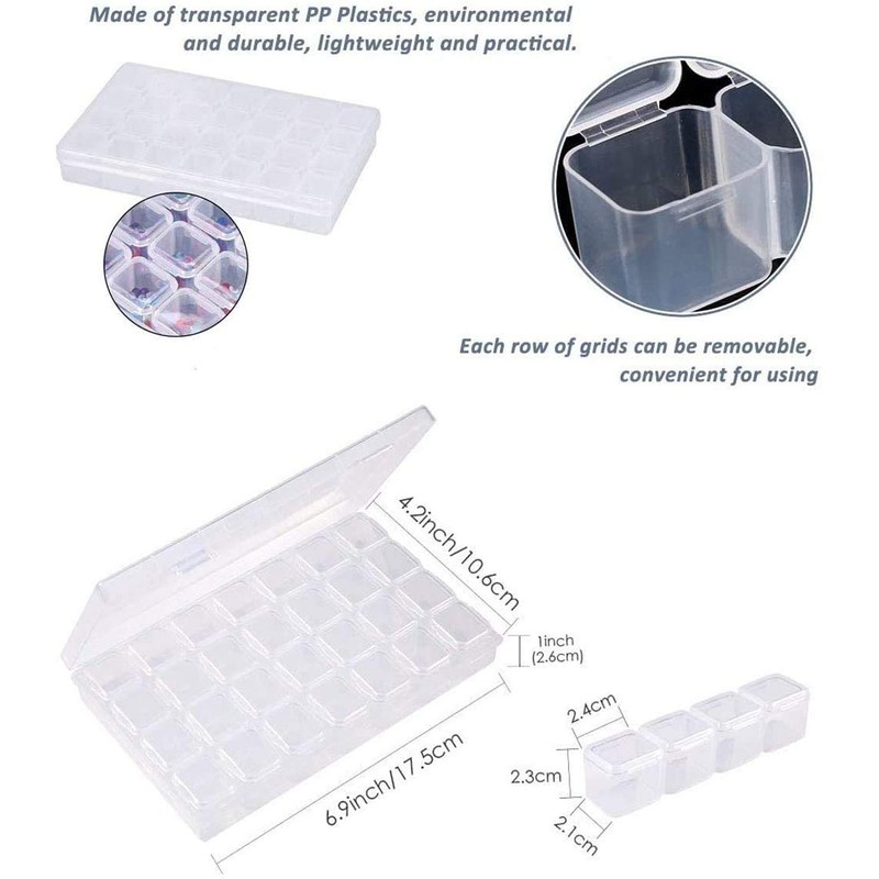- 【28 INDEPENDENT SLOTS】-Diamond painting tool including a large plastic box and 24 independent mini slots. exact fit