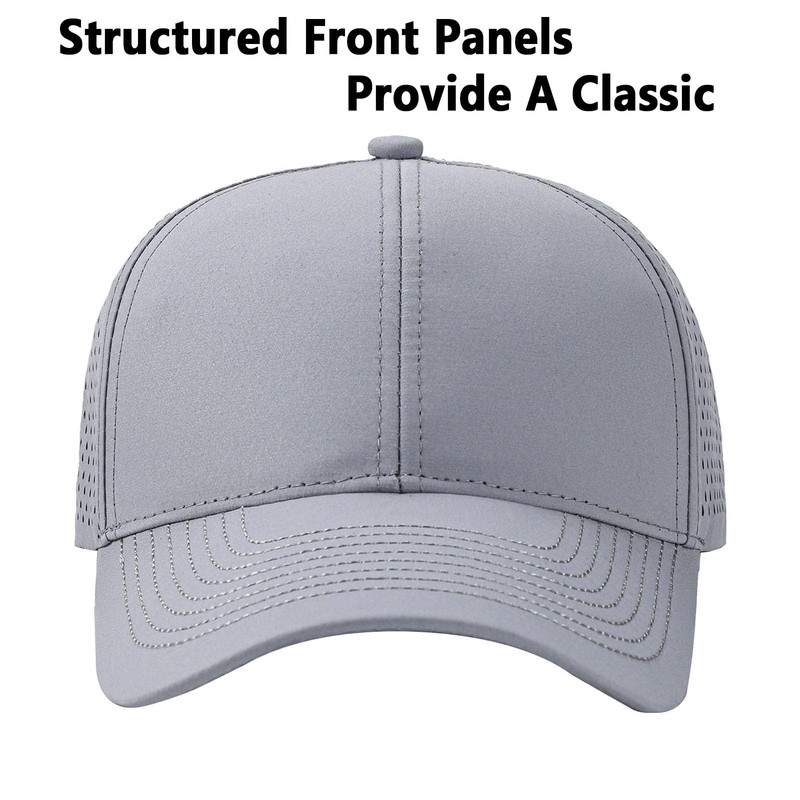 LIRUHOXA Quick Dry Laser Cut Mesh Baseball Cap for Men - Breathable Curved Brim Snapback Trucker Hat for Workouts, Running, Outdoor Grey