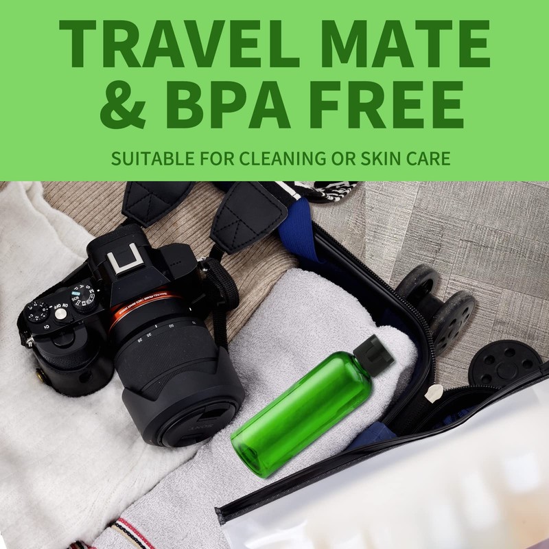 Lisapack Botellas de viaje de 3.4 onzas con tapa abatible (5 piezas) contenedor dispensador vacío para cosméticos de tamaño de viaje (100 ml, verde)