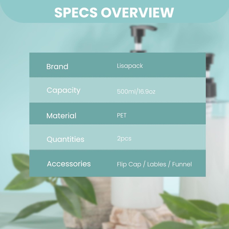 Lisapack Plastic Pump Bottle Dispenser - 2pcs 500ml/16.9oz Empty Shampoo and Conditioner Container Clear Refillable for Lotion - Hand Soap Body Wash Dispenser for Shower (Clear)