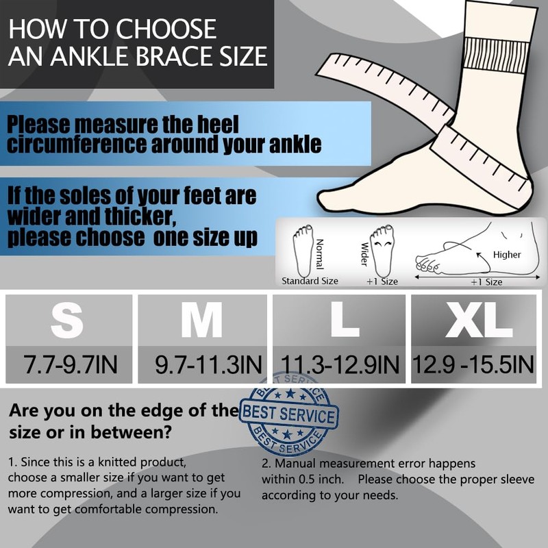 - Three-dimensional knitting process: Surround graded compression design! Ankle support applies even pressure mount on the ankle joint, effectively relieves plantar fasciitis, ankle sprain, tendonitis, heel spur, arthritis, swelling, muscle fatigue, and other ankle pains. Enjoy excellent ankle support while maintaining your peak performance and the full range of leg movement