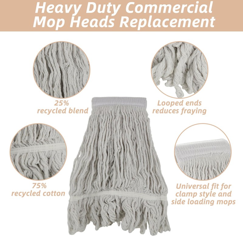 - 【Super Absorbent Cotton Mop Head】These commercial mop heads replacement are made of quality cotton material, which can get wet quickly, and the thread head helps you to wring it out quickly. The mop heads replacement are durable and can be machine washed several times.
