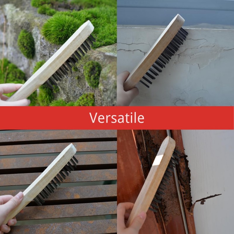 - Superior Cleaning Power:Engineered with 3 Row Steel Bristles, this brush effortlessly removes paint stains, rust, welding slag, and more, leaving surfaces shiny and smooth. Perfect as a rust removal tool for tough cleaning tasks.