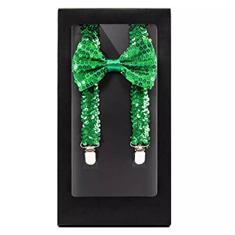 • MAKES THE PERFECT GIFT - Struggling to find the perfect gift idea for your Irish heritage, wife, husband or boyfriend / girlfriend? Matching green sequins suspenders and bowtie set will make a perfect gift! This kit is great for any holiday or celebration, either for anniversaries, birthdays, milestones or just because. It also comes gift ready for your convenience!