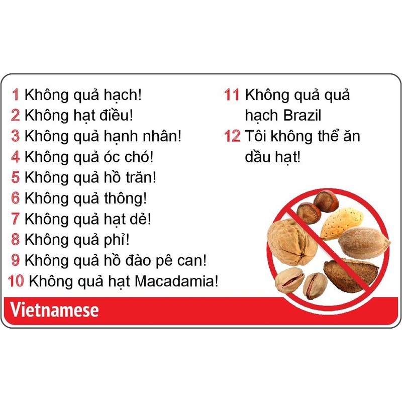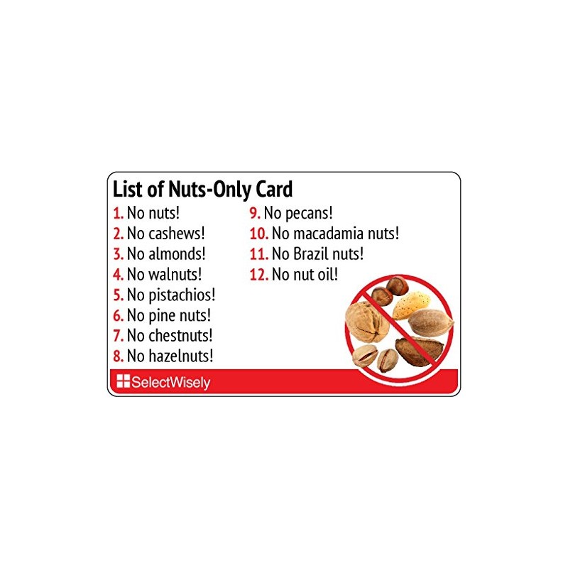 - Our List of Nuts-Only Allergy Translation Card provided in Portuguese (Brazilian). If you need another language select it in the 'Flavor' dropdown above.