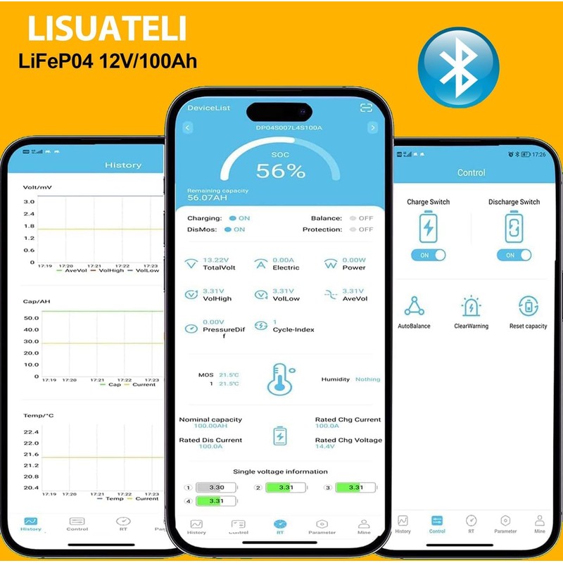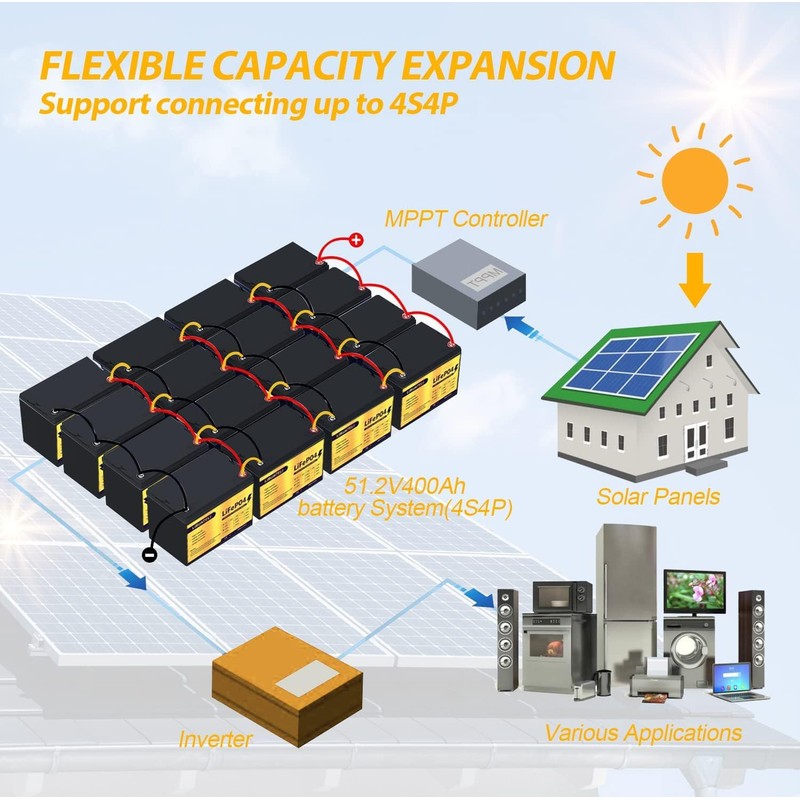 - ➤【Flexible capacity expansion】LISUATELI lithium batteries can be connected in series or in parallel to obtain higher voltage (25.6V/38.4V/51.2V) or larger capacity (support up to 4 series and 8 parallel expansion). Flexible to adapt to various scenarios to meet customer needs.
