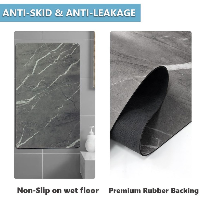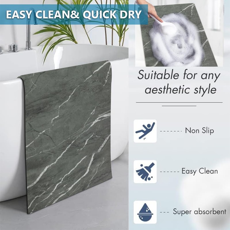 LITA-Bath Rug Custom Size-Rubber Non Slip Quick Dry Super Absorbent Thin Rugs Fit Under Door-Washable Bathroom Floor Mats for in Front of Bathtub,Shower Room,Sink, Gray Marble, 2' x 5'