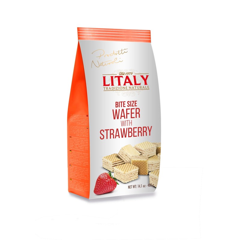 - Litaly Bite Size Wafers with Strawberry contain a light and fluffy wafer with strawberry inside each layer
