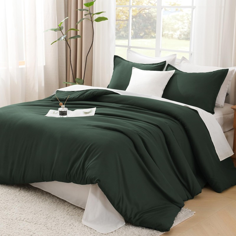 Litanika Forest Green Comforter King Size, 3 Pieces Lightweight Solid Bedding Comforter Set, All Season Fluffy Bed Set (104x90In Comforter & 2 Pillowcases)