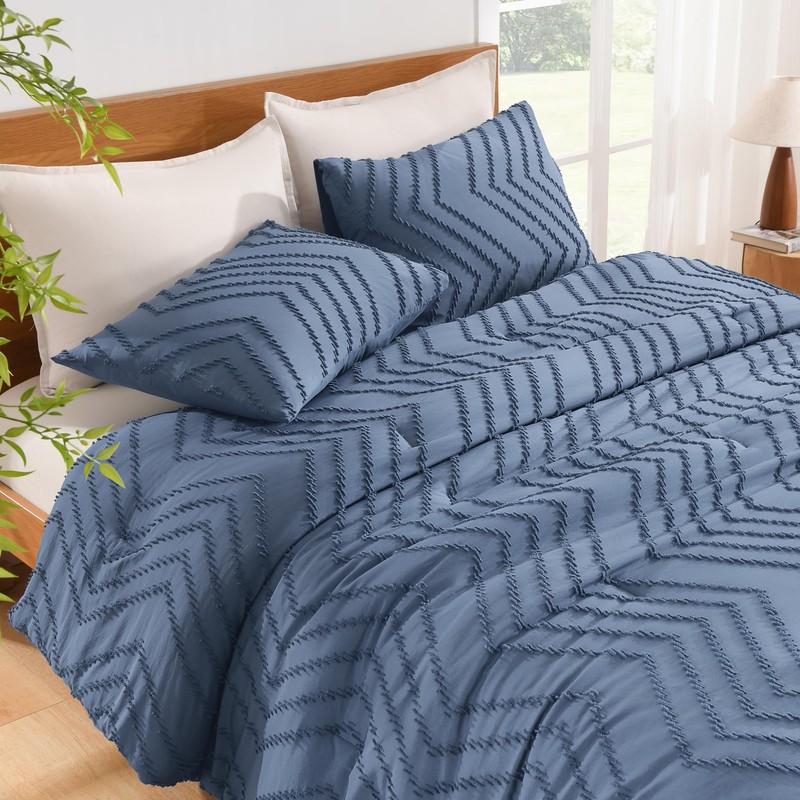 Litanika Ocean Blue Queen Size Comforter Sets, 3 Pieces Lightweight Chevron Tufted Bedding Comforter Set, Fluffy Down Alternative Comforter Bed Set Gift Choice (90x90In Comforter and 2 Pillowcases)