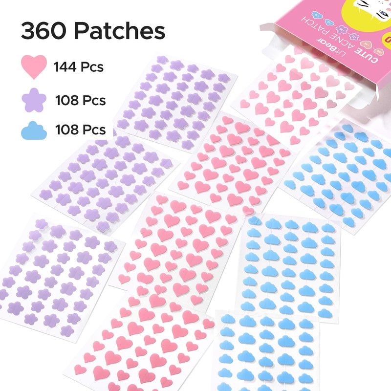 LitBear Acne Pimple Patch, 360 Dots 3 Shaped Colors Pimple Patches with Salicylic Acid, Tea Tree Oil & Calendula Oil, Hydrocolloid Acne Patch for Face, Blemish, Cute Zit Patch Pimple Sticker Acne Dots