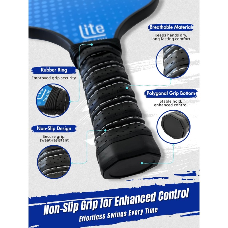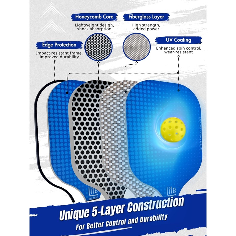 - Lightweight Design for a Better Playing Experience: The LITE READY Fiberglass Pickleball Paddles are made with lightweight fiberglass material, making each swing feel effortless. Compared to graphite or carbon paddles, fiberglass gives you a softer feel and better spin, enhancing your overall playing experience. Perfect for beginners and intermediate players looking to improve their skills while enjoying the game.