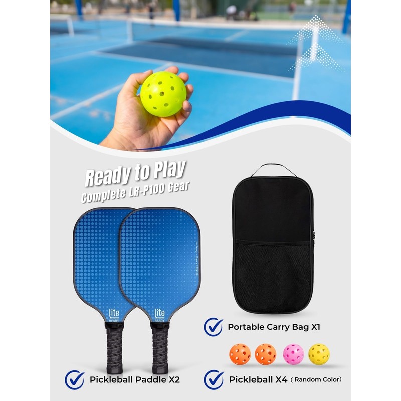 LITE READY Pickleball Paddle Set of 2 – Lightweight Fiberglass Pickleball Paddles with 4 Pickleball Balls and a Bag | Durable Pickleball Equipment for Men and Women, Ideal for Beginners