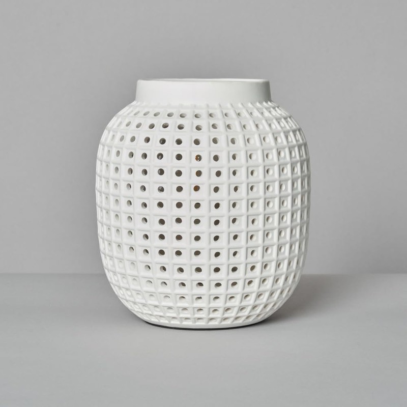 LITECRAFT Kerry Table Lamp Pierced Vessel Styled Ceramic E14 Base - White