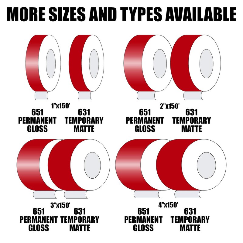 150 Feet per Roll Peel & Stick Durable Adhesive Vinyl Floor Marking Tape with Paper Release Liner available in a variety of colors.