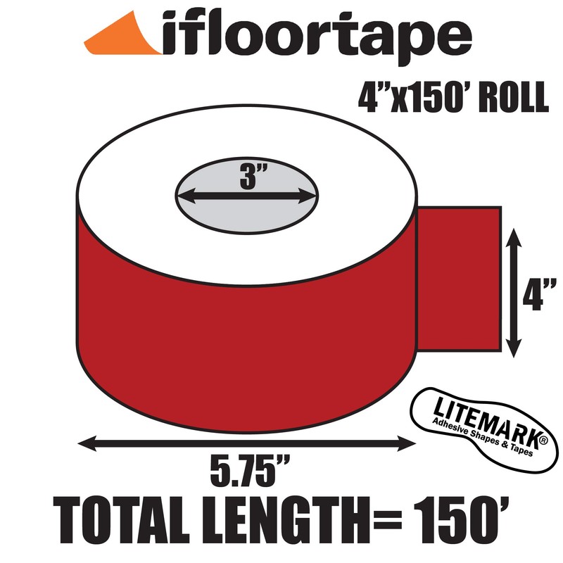 LiteMark 4" Red Durable Vinyl Marking Tape - High-Visibility Gloss Finish, Adhesive for Smooth Surfaces - Ideal for Safety Marking, Floors, Warehouses, 5s Management - 150 Feet Roll