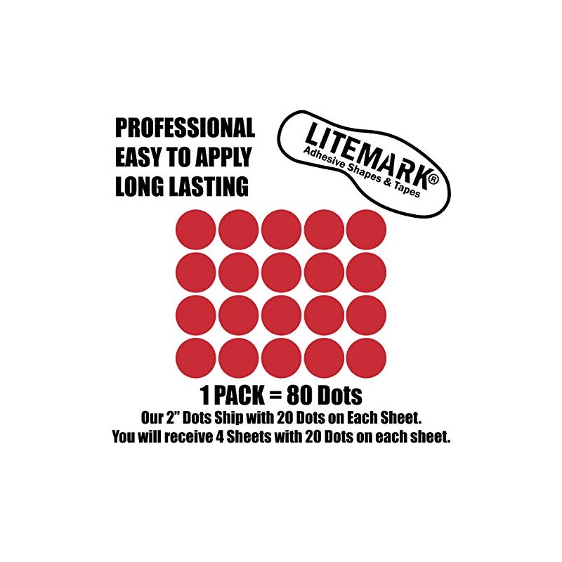 LiteMark Removable Matte Finish Red 2 Inch Small Dot Decal Vinyl Stickers | Great for Floors, Ceilings, Walls, and Most Smooth Surfaces | Pack of 80 Dots