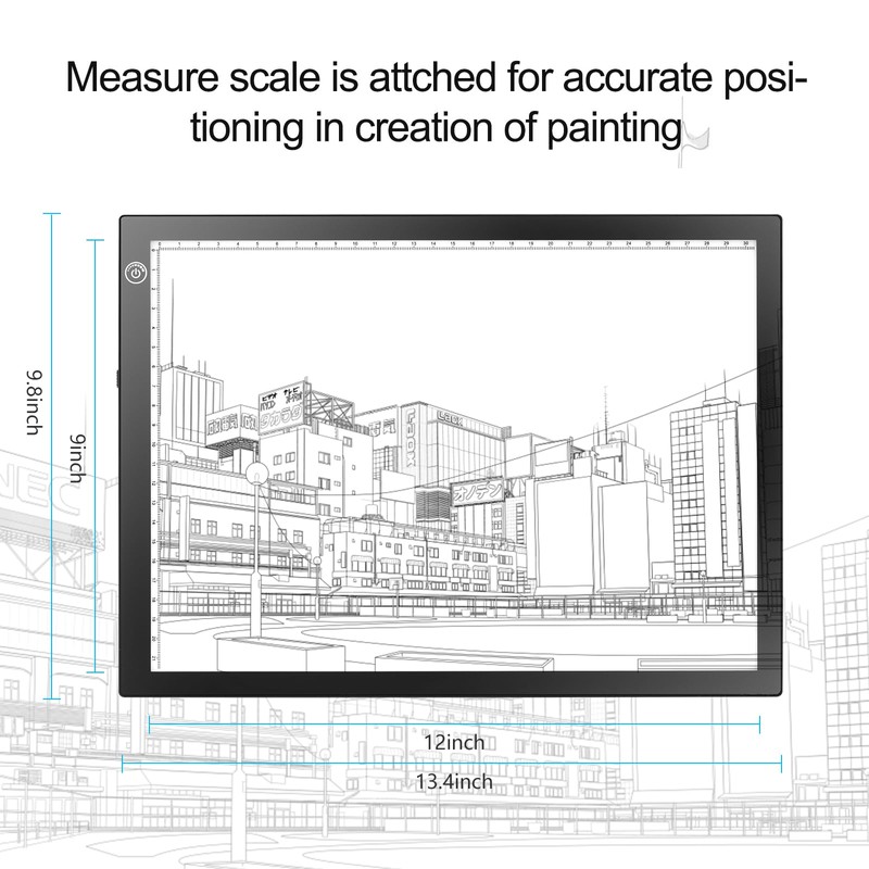 - Ultra Thin and Portable - Thickness 8mm; Work Surface 12 by 9 Inches, fit on A4 size sheet; Weight 0.55kg. Accurate Positioning - Measure scale is attached, benefiting the accurate positioning in drawing creation.