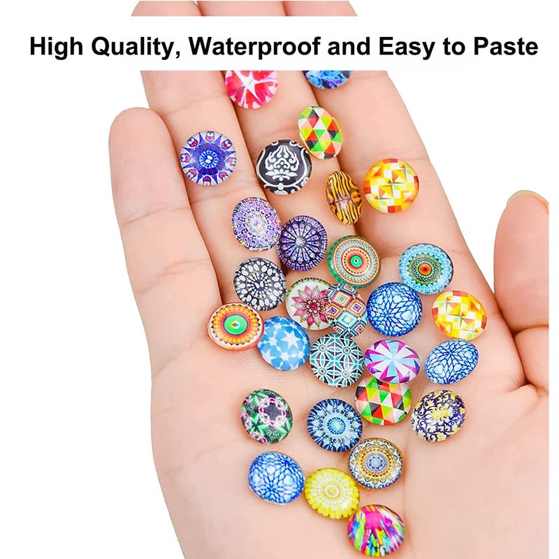 - Clear and Durable The mosaic tiles use high definition printing technology for clear patterns on the mosaic glass cabochons. These shiny crafts round decorative waterproof mixed colours glass buttons / beads / gemstones / nuggets/tiles are attractive for DIY.