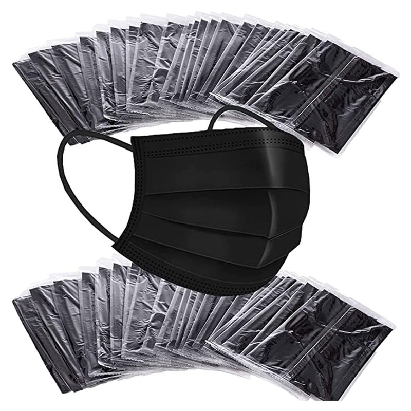 Litepak 100pcs Premium Individually Wrapped Disposable Face Mask Black Premium Comfort Earloops Nose Wire