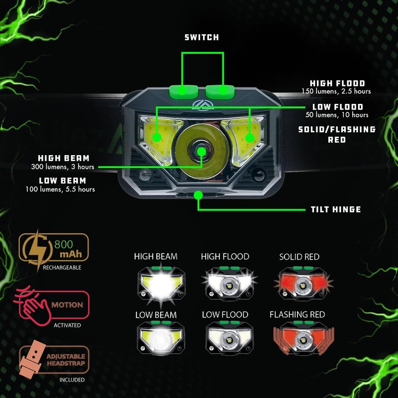 LitezAll 26079 SWYPE Rechargeable Motion Activated LED Headlamp Multifunction