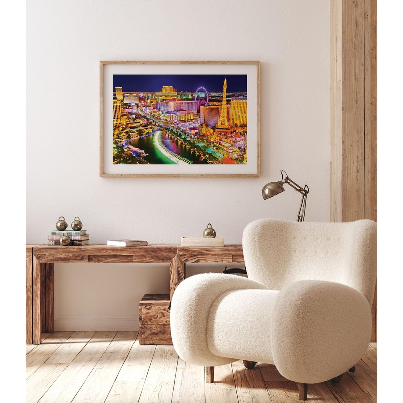 Lithobee - Las Vegas Boulevard At Night - Printed Wall Art Design in Sizes A2, A3 & A4 Framed in a Stylish Quality Coloured Frame or Unframed (A4 White Saw Cut Grain Frame)