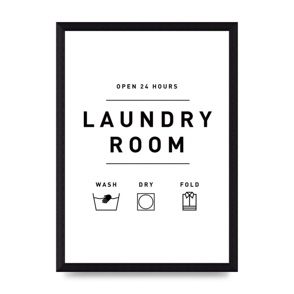 Lithobee - Laundry Room - Printed Wall Art Design in Sizes A2, A3 & A4 Framed in a Stylish Quality Coloured Frame or Unframed (A4 Black Brushed Frame)