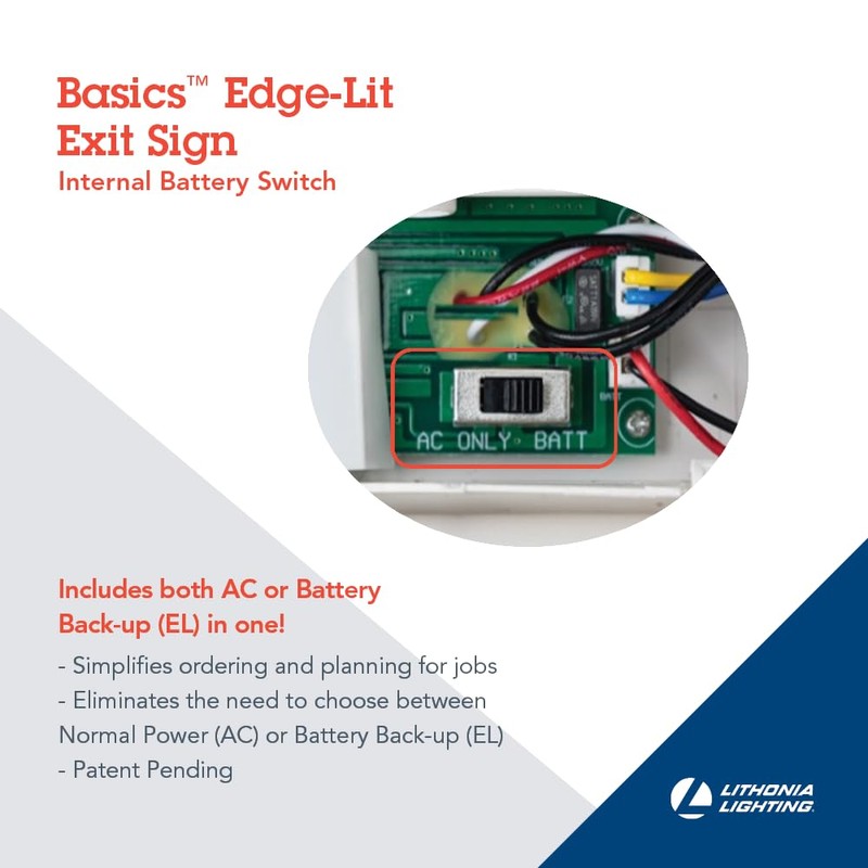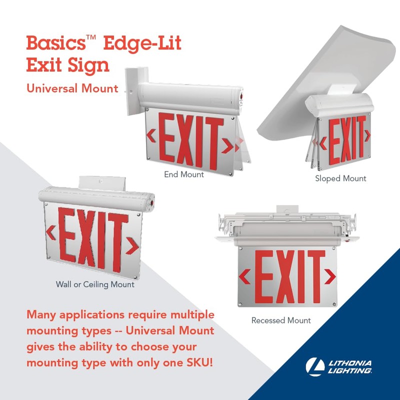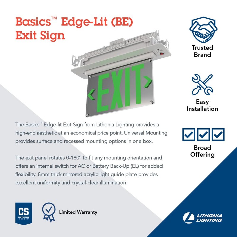 Lithonia Lighting BE W G UM M2 BE Basics Edge-Lit Exit Sign, White with Green Letters, Universal Mount