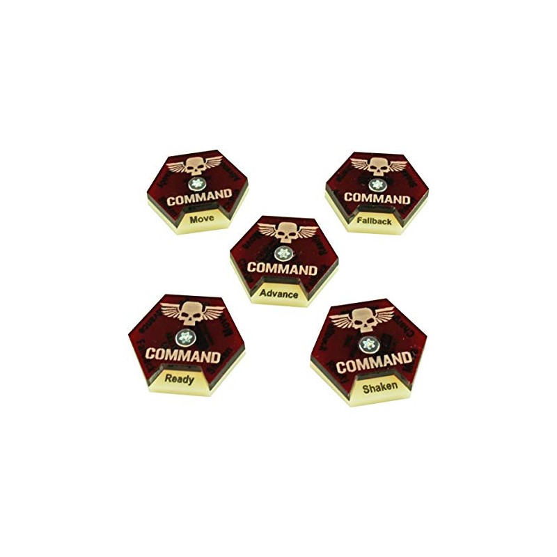 - UV Printed black lettering for 5 Command actions: Ready, Move, Advance, Charge, and Fallback & 1 Shaken condition for models that have failed the nerve test