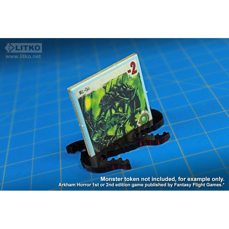 The mythos themed Monster Bases are designed to allow your monster tokens to stand-up but still create a "slithering" effect. With monsters upright - for better visibility - all players will be able to easily see the monsters stats. This information will allow you to calculate your next move to defeat the evil ones.
