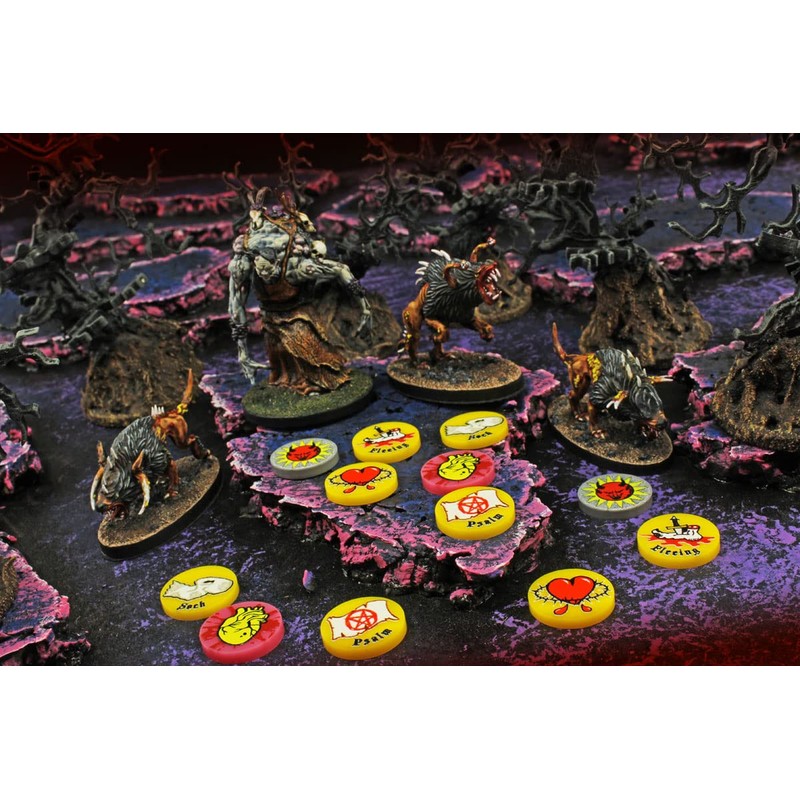 • DARK FANTASY - (30) Premium Printed Dark Fantasy Horror tokens set. These garish tokens are UV printed in full color. Forbidden Psalm is the blood-soaked, horror-filled dark fantasy miniatures game based on the MÖRK BORG game world. Forbidden Psalm is the 28mm scale model agnostic tabletop miniatures game inspired by and compatible with MÖRK BORG.