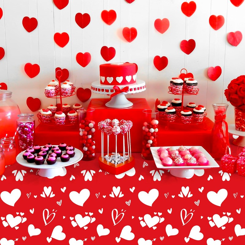 • ??Classic Heart Themed Design- This Heart valentine tablecloth is painted with different heart shapes, which makes this tablecloth eye-catching and adds an attractive scenery to your 2024 valentines decorations.