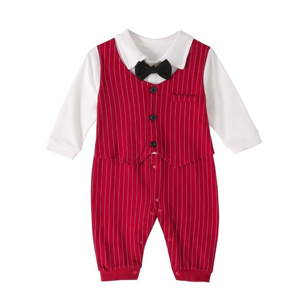 - Adorable tuxedo romper one-piece gentleman outfit for infant or baby boys! Onesie dressy suit with bow tie for many formal occasions!