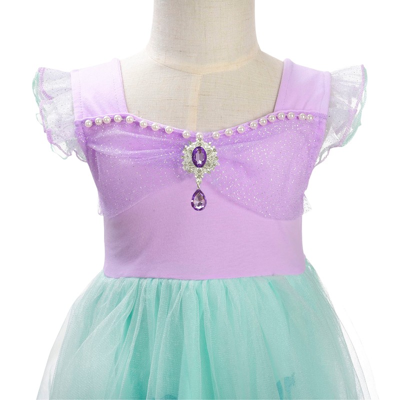 - Sweet and adorable mermaid inspired princess Ariel fancy tulle dress casual costume for toddler girls or kids! Pair with 3 pieces accessories set for a cute look! (Crown + Wand + Necklace)
