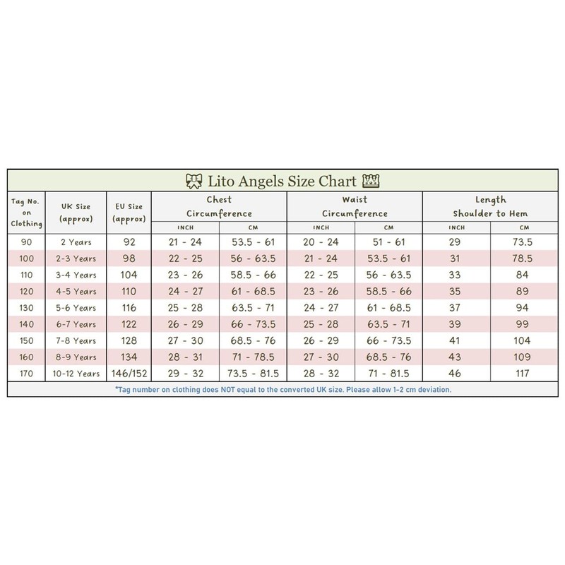 - Size for baby, toddler girls or little kids, age 2, 2-3, 3-4, 4-5, 5-6, 6-7, 7-8, 8-9 and 10-12 years. Please refer to our size chart for more accurate measurements.